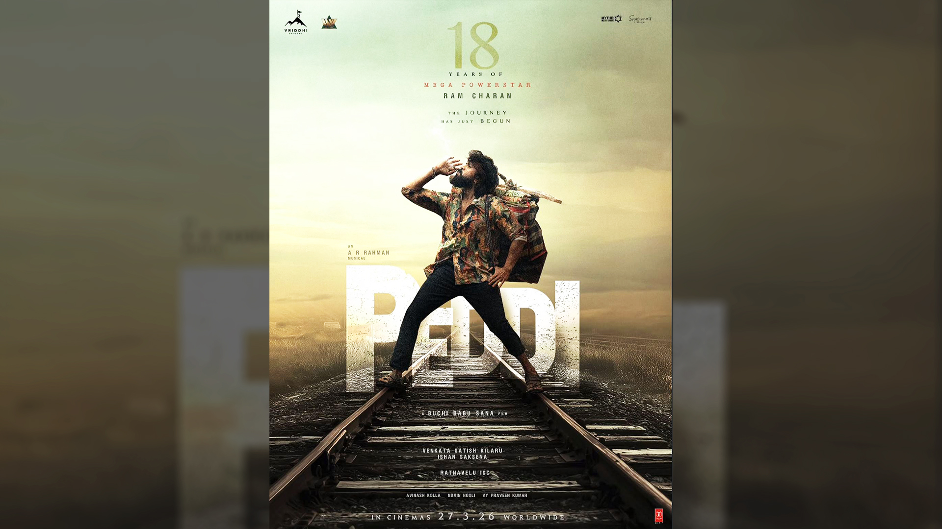 The caption read – “Celebrating our #Peddi’s 18 incredible years in cinema ❤‍🔥 From carrying a rich legacy on screen to being grounded off the screen, you’ve stood apart from all the stars and paved your own path giving us many moments of high & energy. Here’s to celebrating MEGA POWER STAR @AlwaysRamCharan and his journey ⭐ This is just the beginning. Bigger things await starting from #Peddi 🔥 #18YearsOfRAMCHARANsGlory #PEDDI WORLDWIDE RELEASE ON 27th MARCH, 2026.”
