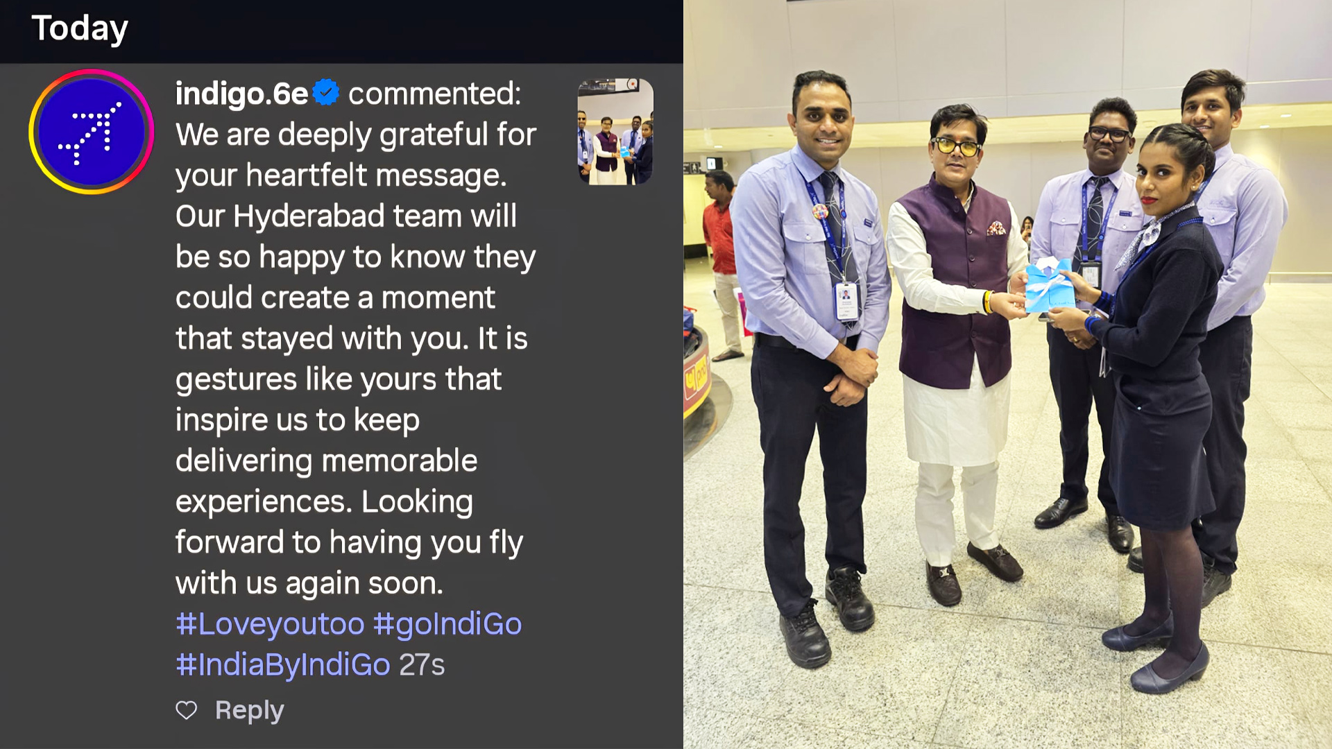 Acharya Vinod Kumar Receives Warm Welcome from IndiGo Airlines at Hyderabad Airport