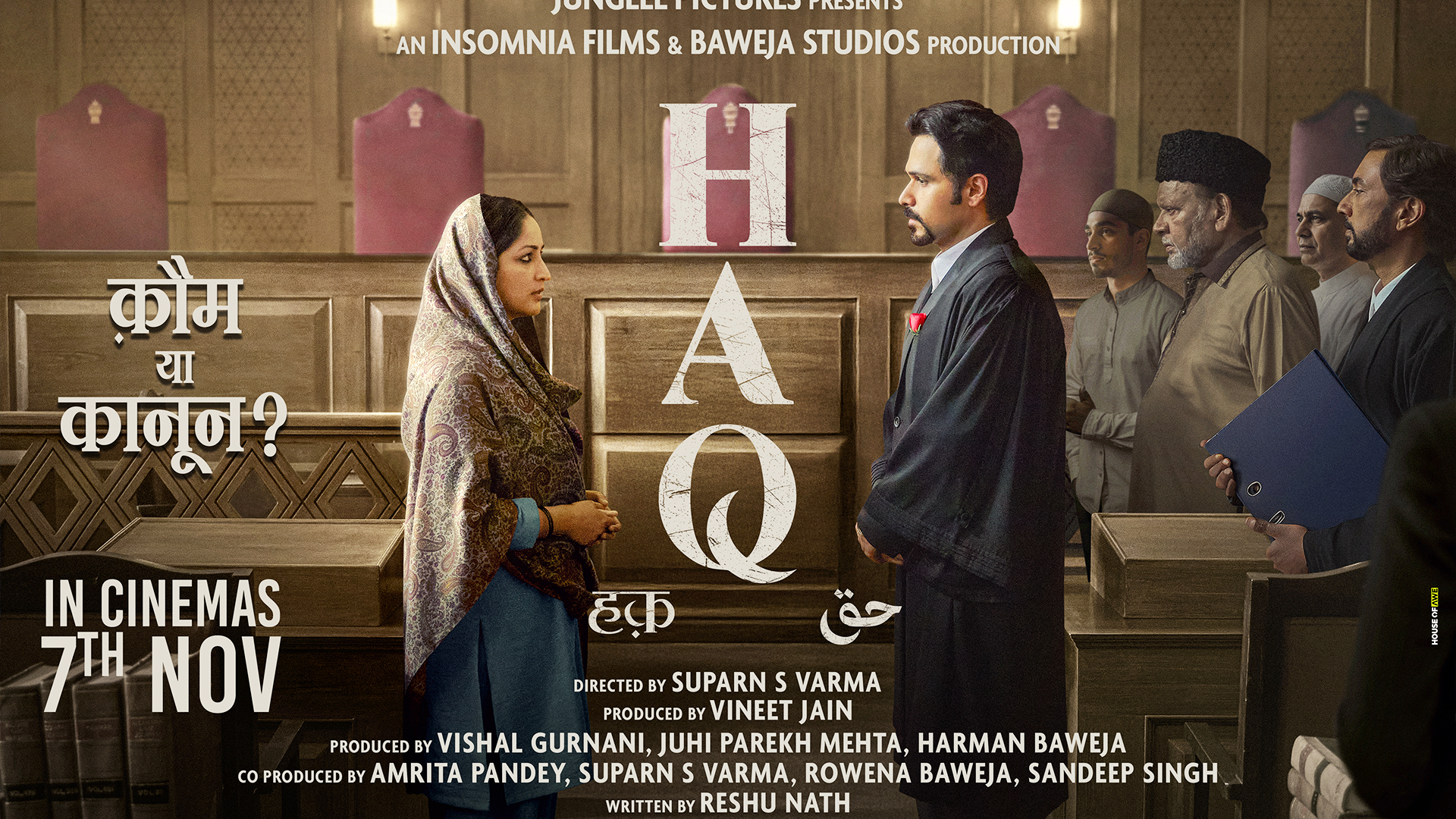 Produced by Junglee Pictures, in association with Insomnia Films and Baweja Studios, HAQ releases in theatres on 7th November 2025.