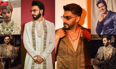 *Vicky Kaushal:* Vicky Kaushal decks himself in a sharply tailored black bandhgala sherwani with off-white, floral embroidery. The Chhaava star keeps it refined and regal by pairing it with black pants and completing his ensemble with black formal shoes.