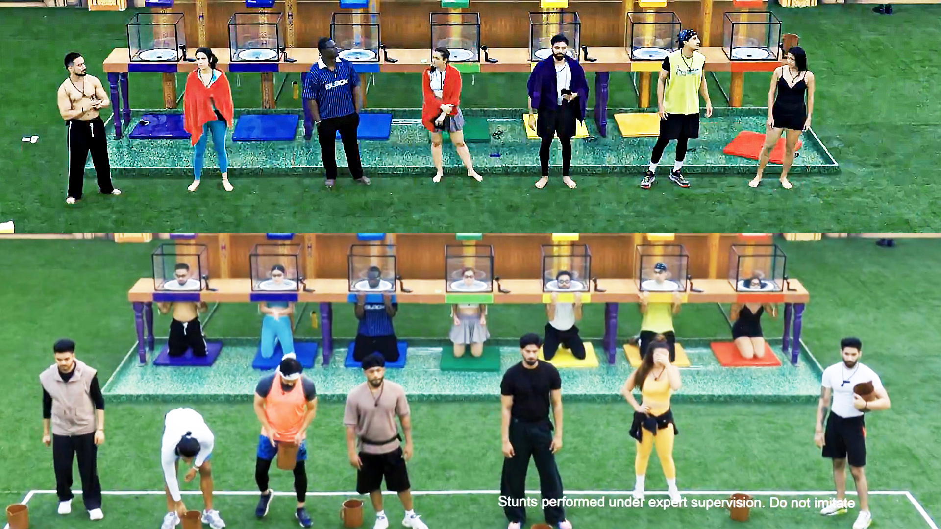 Khanzaadi’s team is disqualified after she is caught moving inside the box and letting water escape instead of remaining still. Ridhi and Adnan’s team are also disqualified for similar rule violations. Arushi gives up mid task due to breathing difficulty, pushing her team into the bottom four.