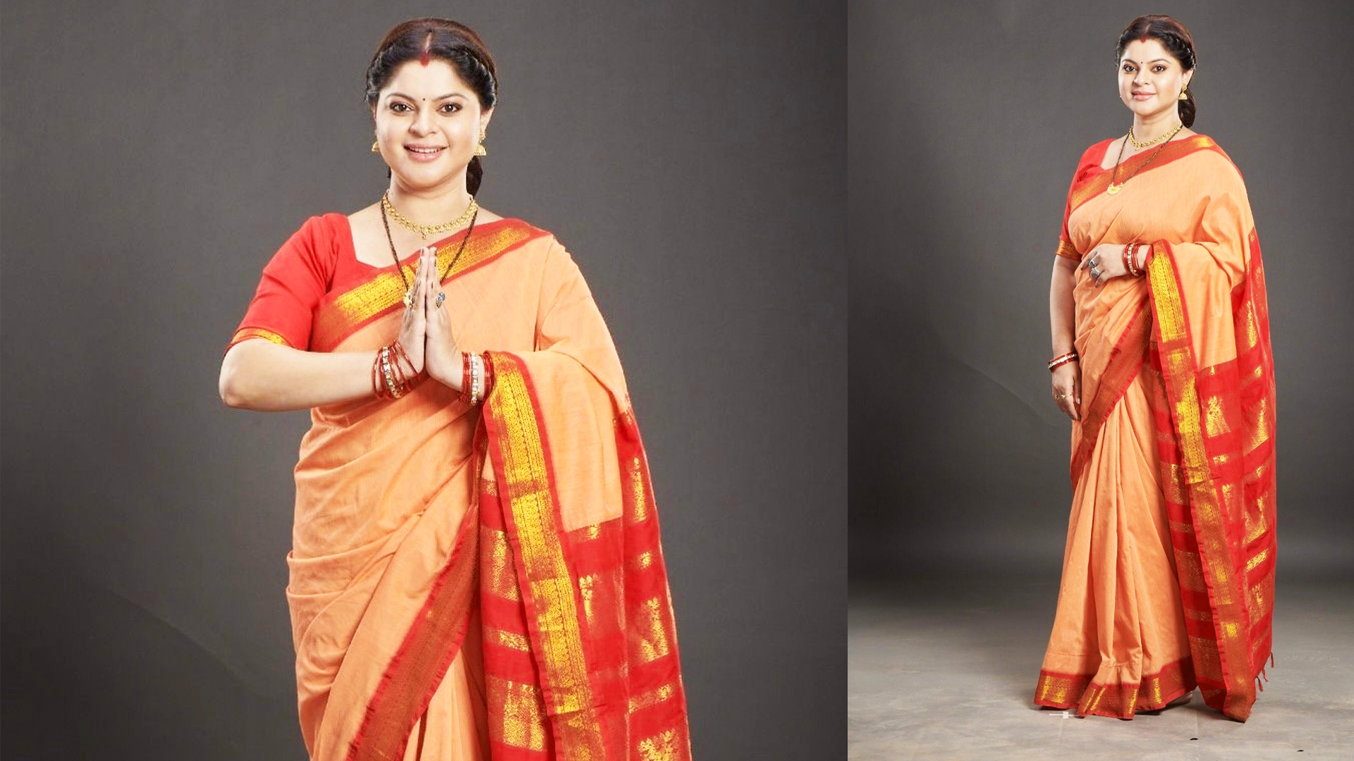 A. Vidya’s universe begins and ends with her husband and her children. For her, happiness is simple – a shared meal, a peaceful home, children who feel emotionally safe. She lives a life stripped of excess, and that reflects in her appearance, too. Slipping into Vidya’s look is instinctive for me – just a sari, mangalsutra, bangles, and a bindi.